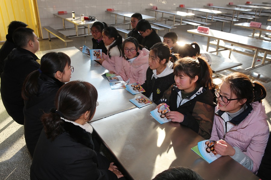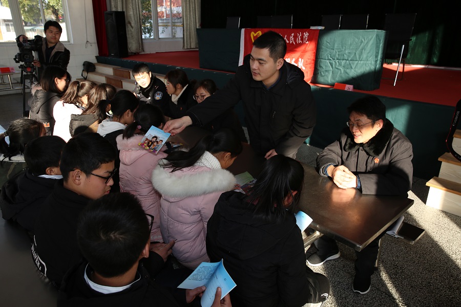 在氛围活跃的教室里,兴化法院少年庭王庆和庭长以鲜活的典型案例为教材生动诠释了未成年人犯罪的成因、类型等相关法律知识,以及如何防范违法犯罪等内容,赢得了同学们的阵阵掌声。课后,志愿者服务队的青年干警还给学生分发了案例读本,并与学生代表开展互动,增强同学们的参与感,帮助他们提高法律修养。